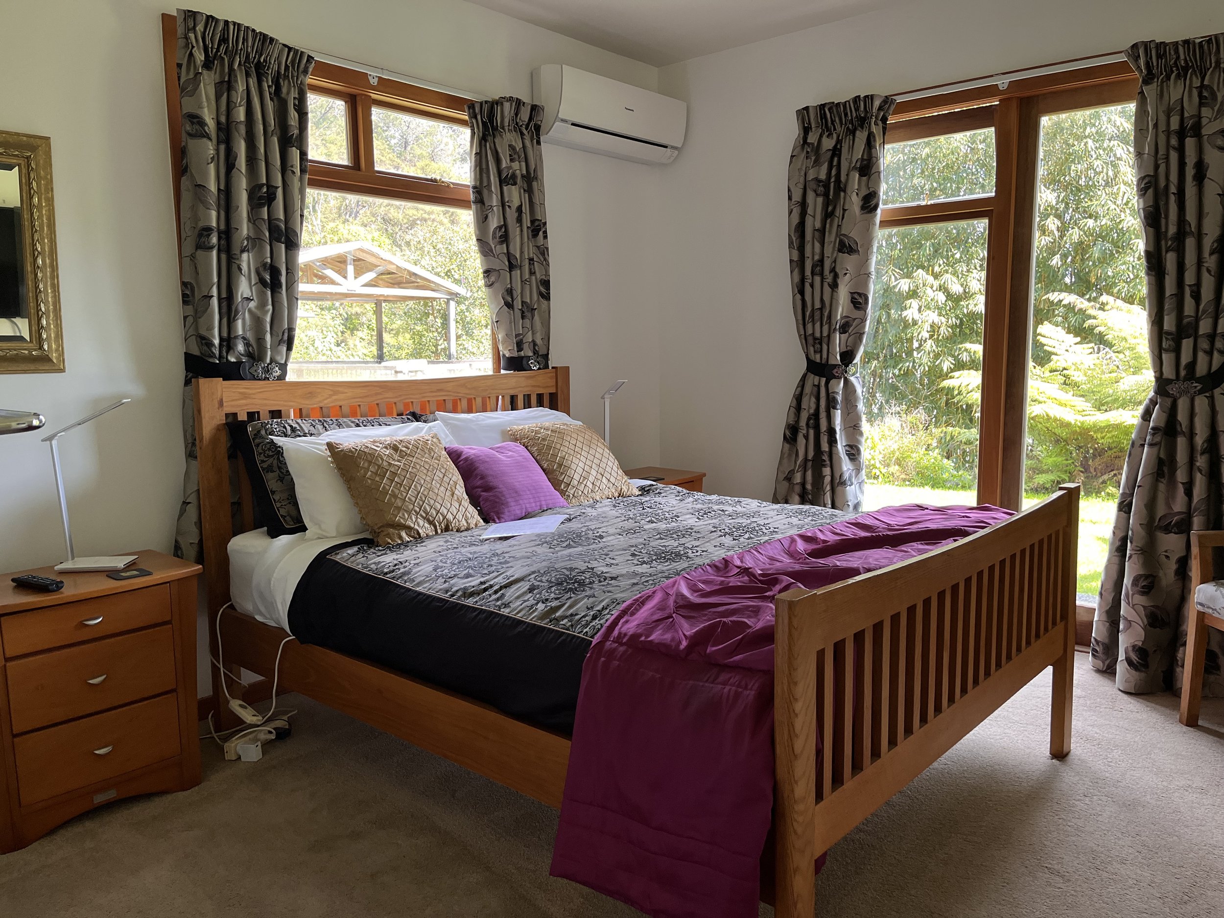 Bedroom 1. Queen Bed, Air conditioning, TV, Internet, Phone charging, Bath Robes and Outdoor access